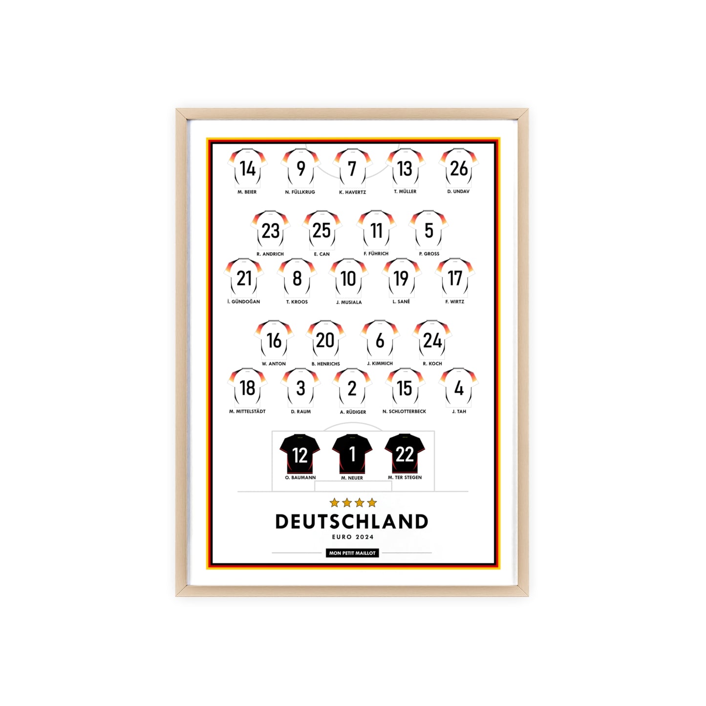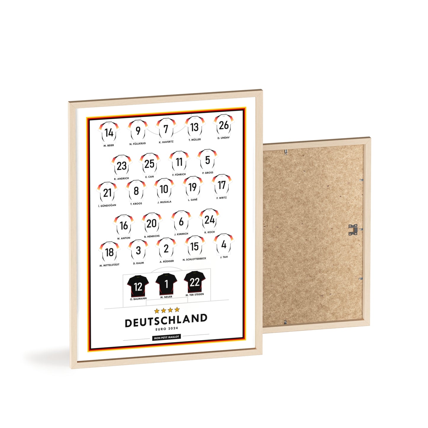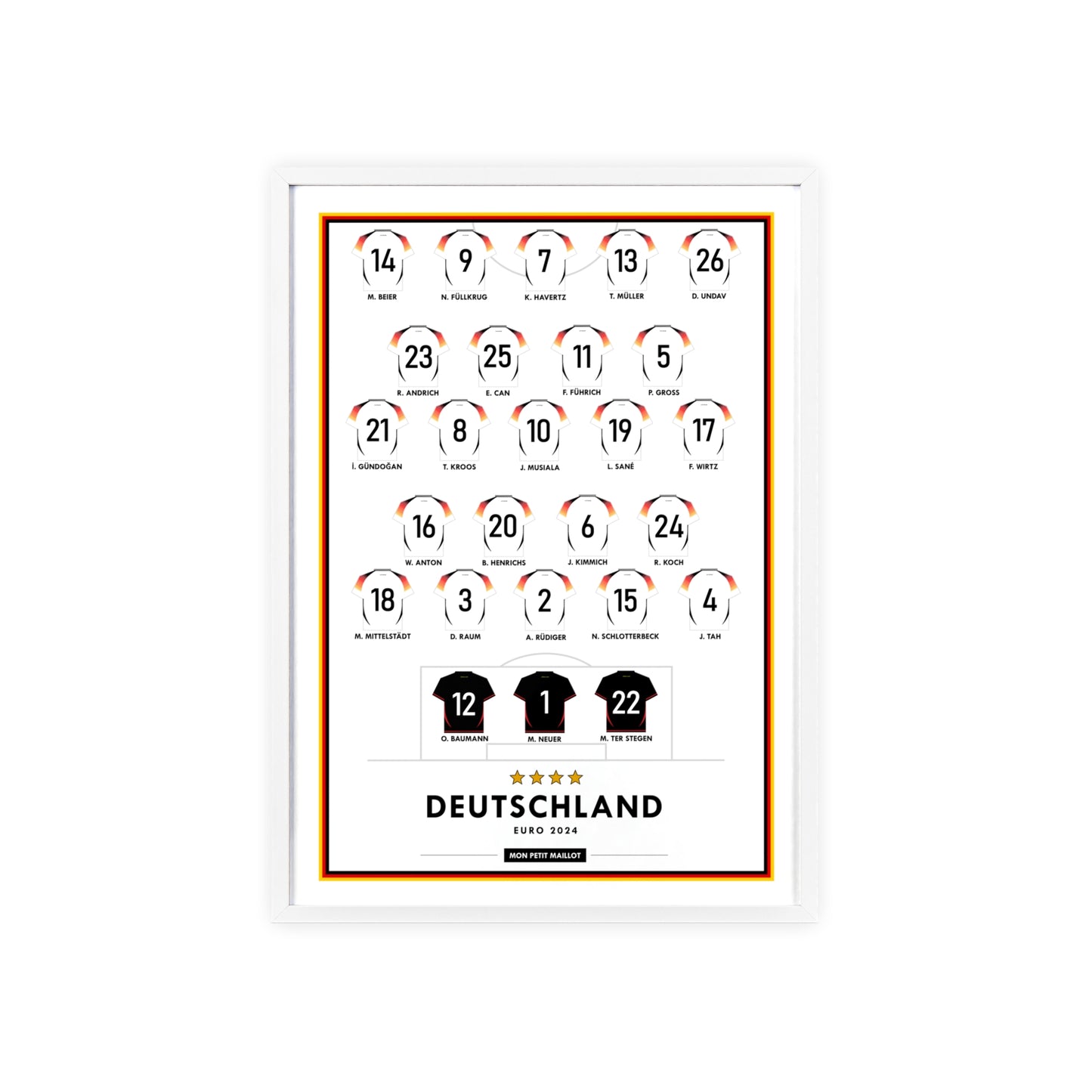 Sublimez votre pièce avec notre poster encadré de l'équipe d'Allemagne, personnalisé aux couleurs de la Mannschaft pour l'EURO 2024.