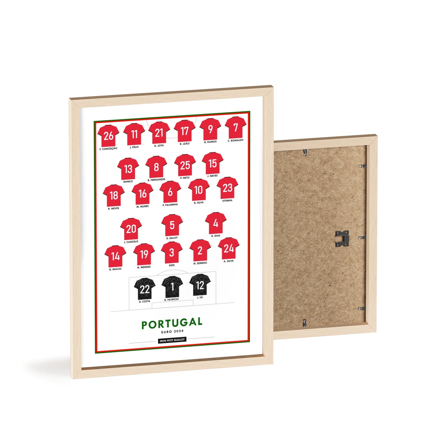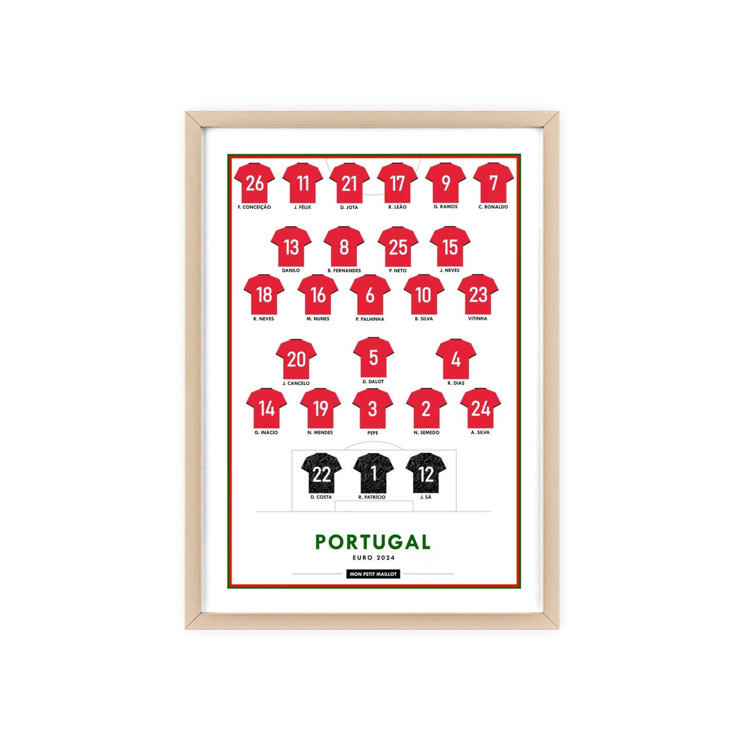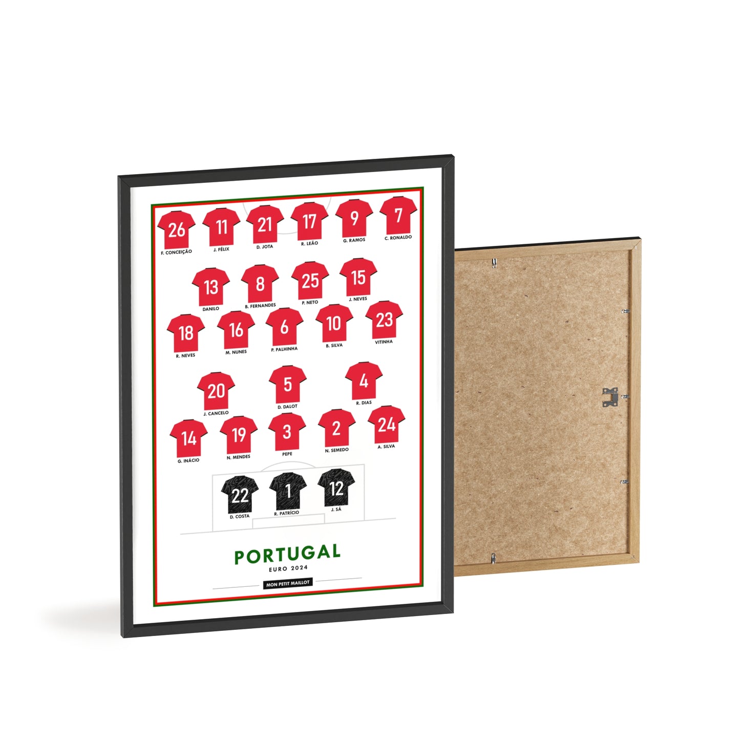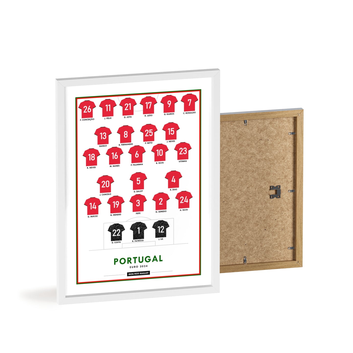 Sublimez votre pièce avec notre poster encadré de l'équipe du Portugal, personnalisé aux couleurs de la Seleção pour l'EURO 2024.