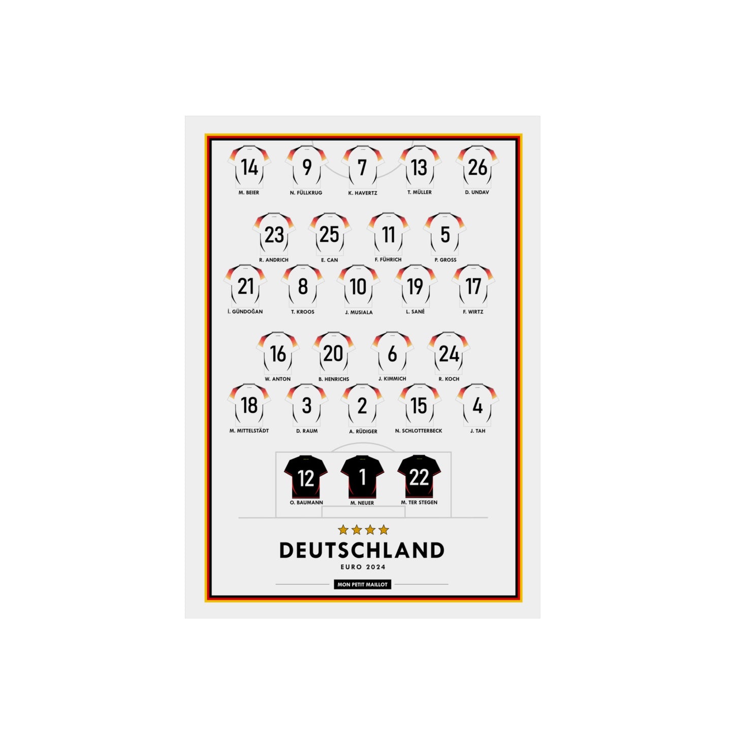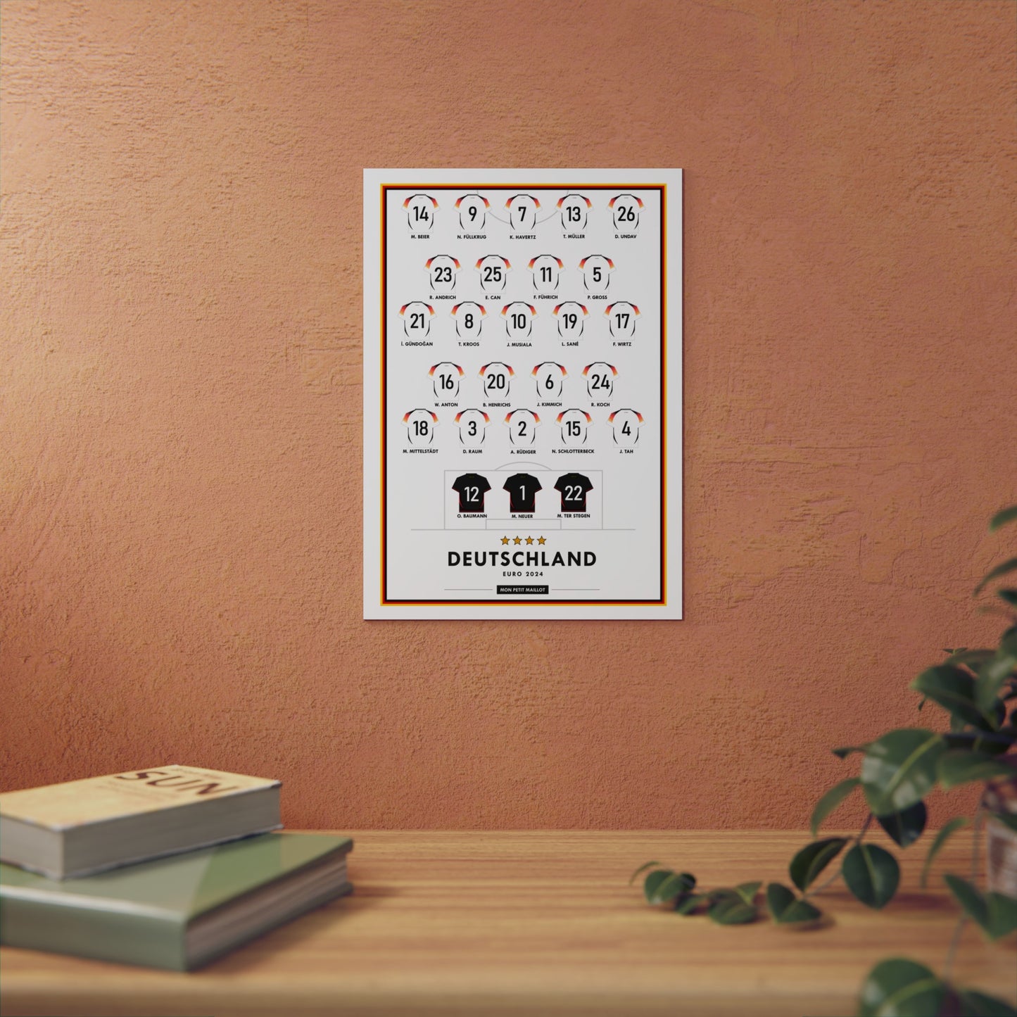 Ajoutez une touche moderne à votre décoration avec notre poster métallique de l'équipe d'Allemagne pour l'EURO 2024. Personnalisé aux couleurs de la Mannschaft , ce poster sportif est parfait pour afficher votre passion.