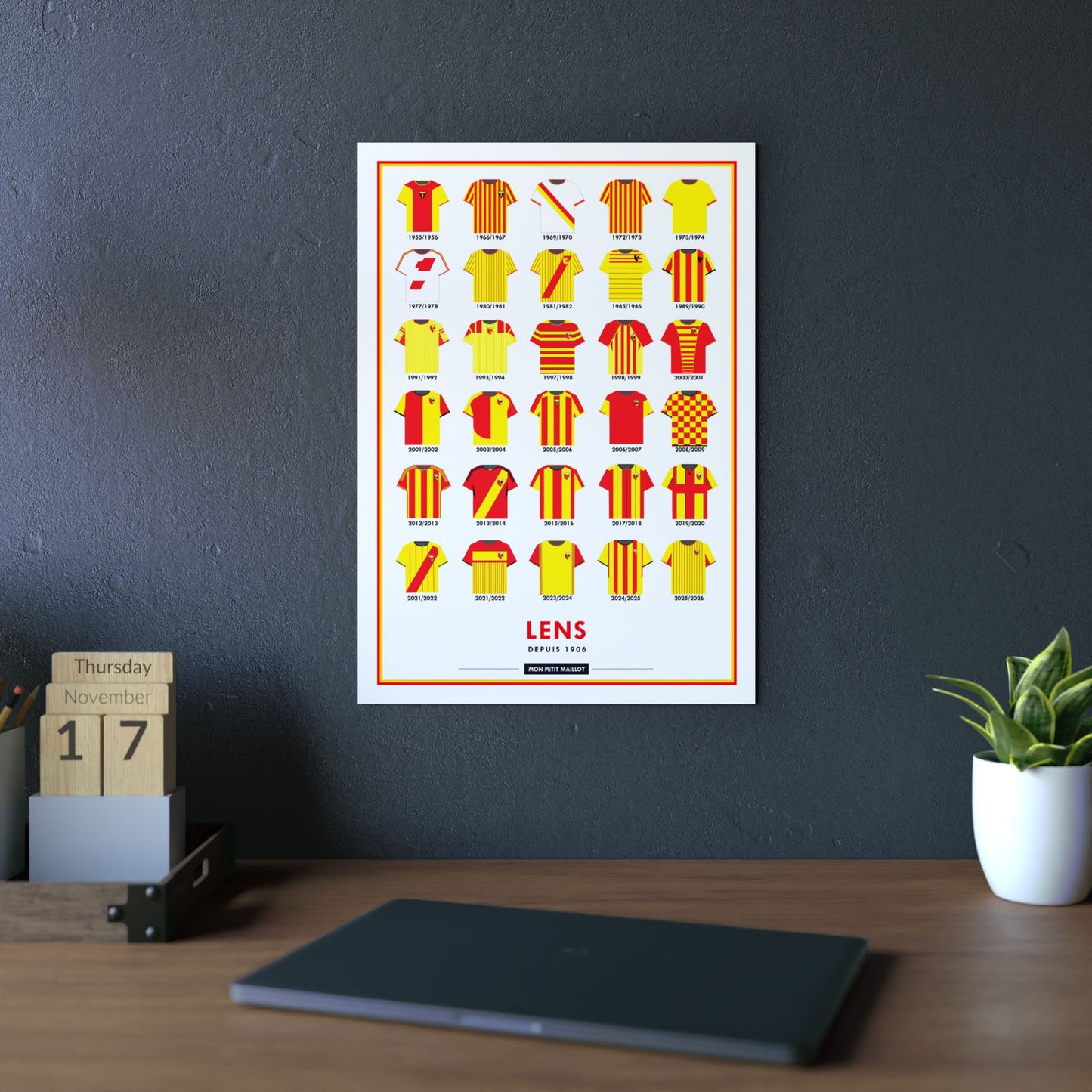 Transformez votre décoration murale avec un poster métal football unique, dédié aux fans de Lens. Disponible exclusivement sur MonPetitMaillot.shop, ce poster métallique foot allie design moderne et durabilité exceptionnelle pour un hommage intemporel à votre club favori.
