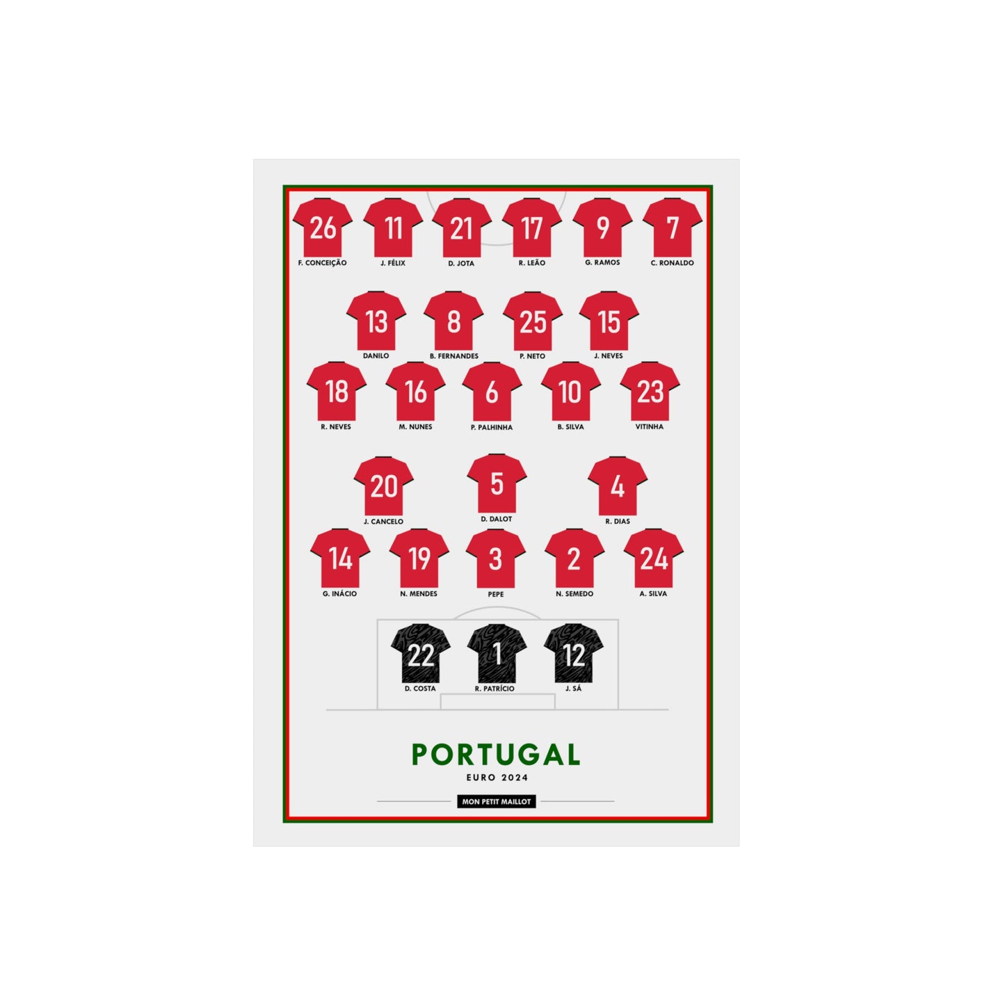Parfait pour les fans de football, ce poster métallique est un incontournable pour votre collection. Commandez maintenant et montrez votre soutien à l'équipe du Portugal avec style.