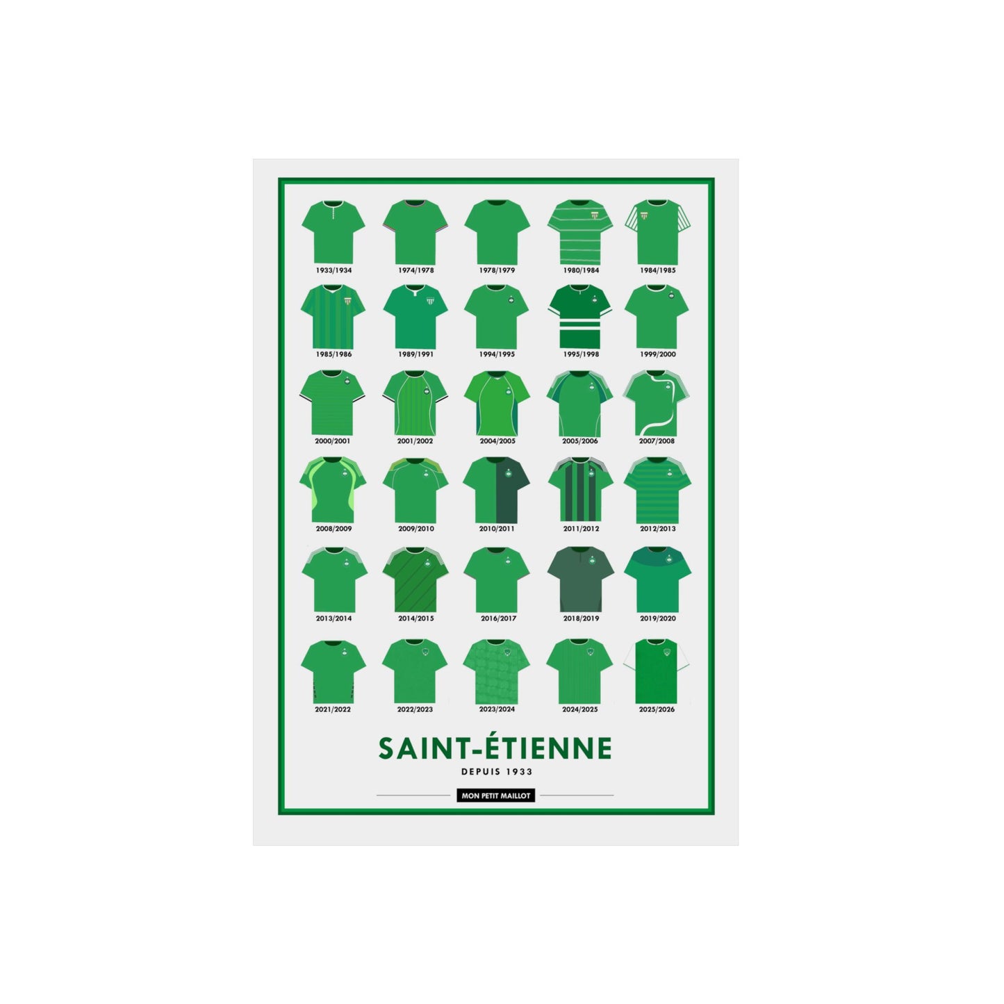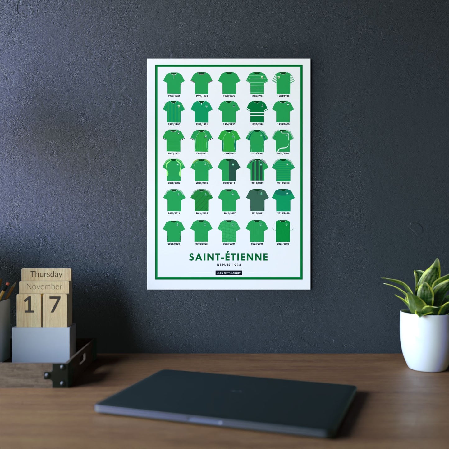 Transformez votre décoration murale avec un poster métal football unique, dédié aux fans de Saint-étienne. Disponible exclusivement sur MonPetitMaillot.shop, ce poster métallique foot allie design moderne et durabilité exceptionnelle pour un hommage intemporel à votre club favori.