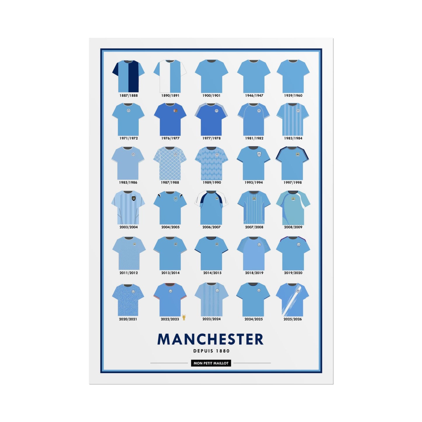 Offrez à votre décoration un hommage vibrant à Man. City avec cette affiche football exclusive, disponible uniquement chez Mon Petit Maillot. Ce poster football Man. City est plus qu'un simple élément décoratif, c’est un véritable manifeste de votre passion pour le club.