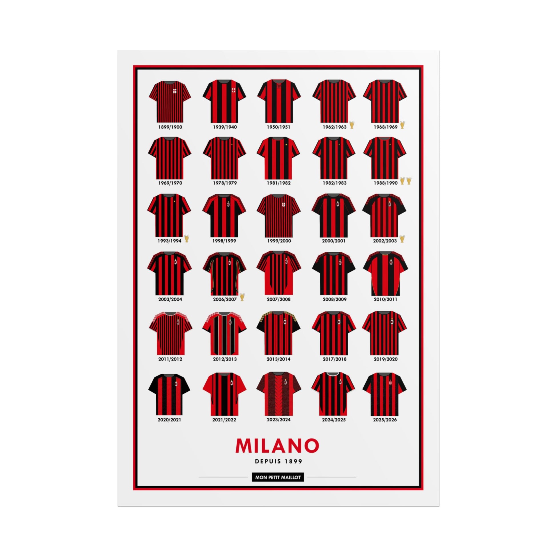 Offrez à votre décoration un hommage vibrant au Milan avec cette affiche football exclusive, disponible uniquement chez Mon Petit Maillot. Ce poster football Milan est plus qu'un simple élément décoratif, c’est un véritable manifeste de votre passion pour le club.