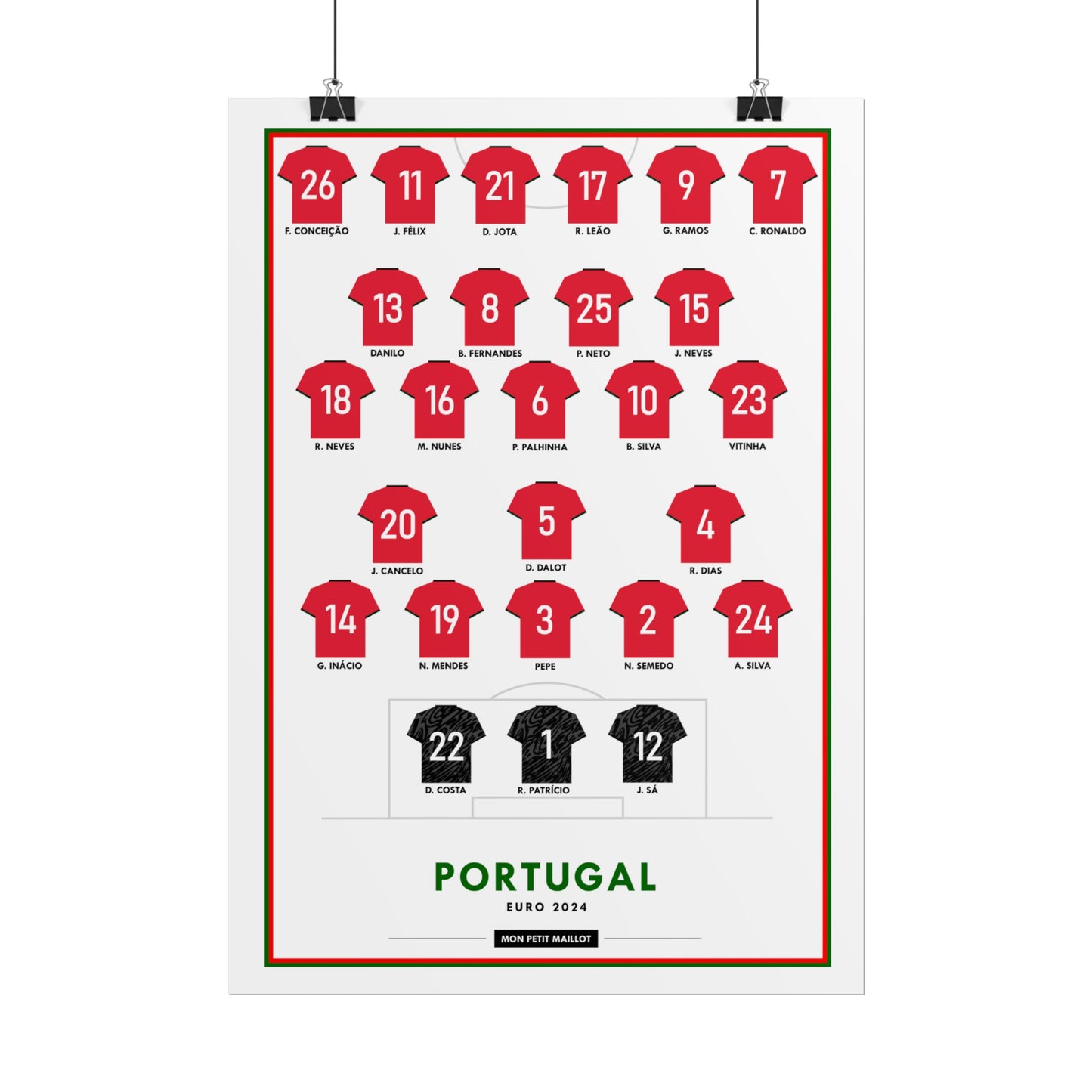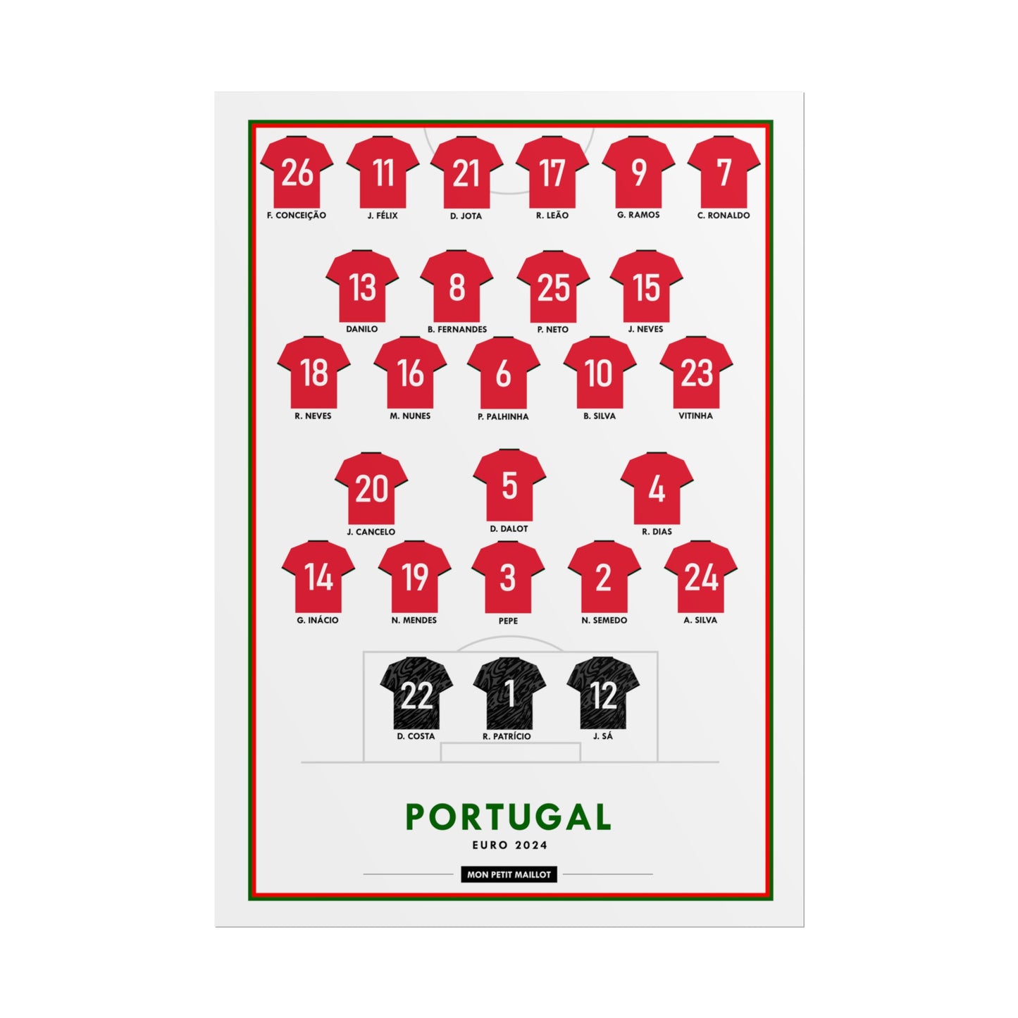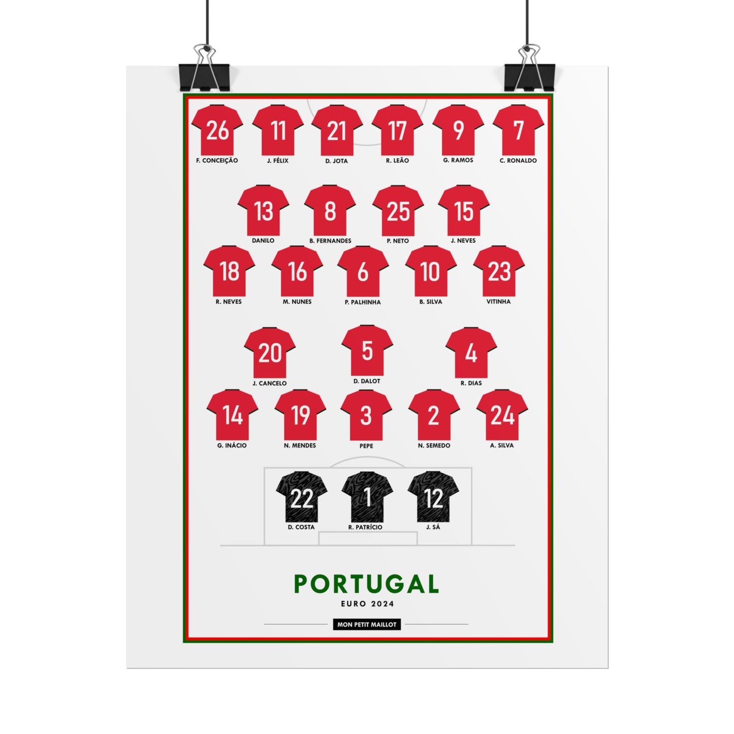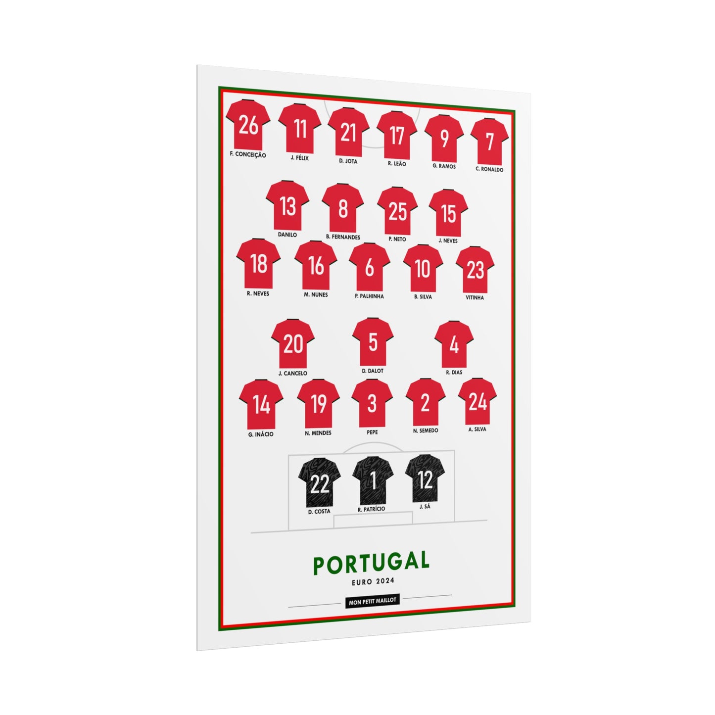 Parfait pour les fans de football, ce poster est un ajout essentiel à votre collection. Commandez maintenant et affichez votre soutien pour l'équipe du Portugal avec fierté.